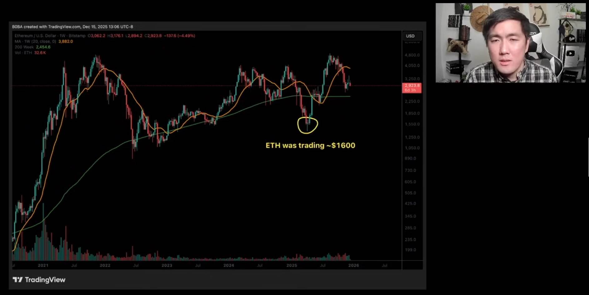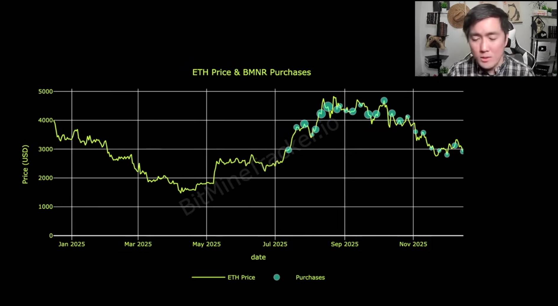 • I believe Tom Lee has inflated ETH's price significantly, and now the amount he is buying has been decreasing over time. I think ETH will converge to its fair value. I don't know what the fair value is, but it could be much lower. You can see that Tom Lee's activity has involved buying a lot above $4,000, but if you understand how DATs operate, when cryptocurrencies rise, people flood into these assets because the market is reflexive. So these DATs buy heavily during the rise, and once the market continues to decline for a long time, they can no longer keep buying.