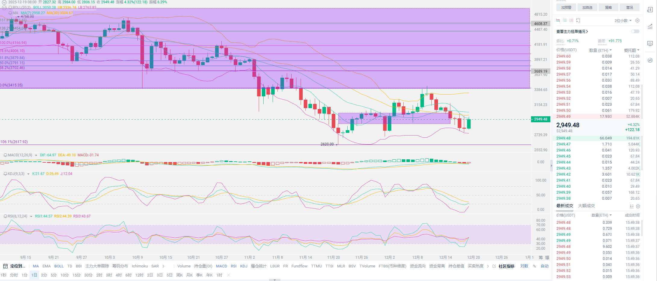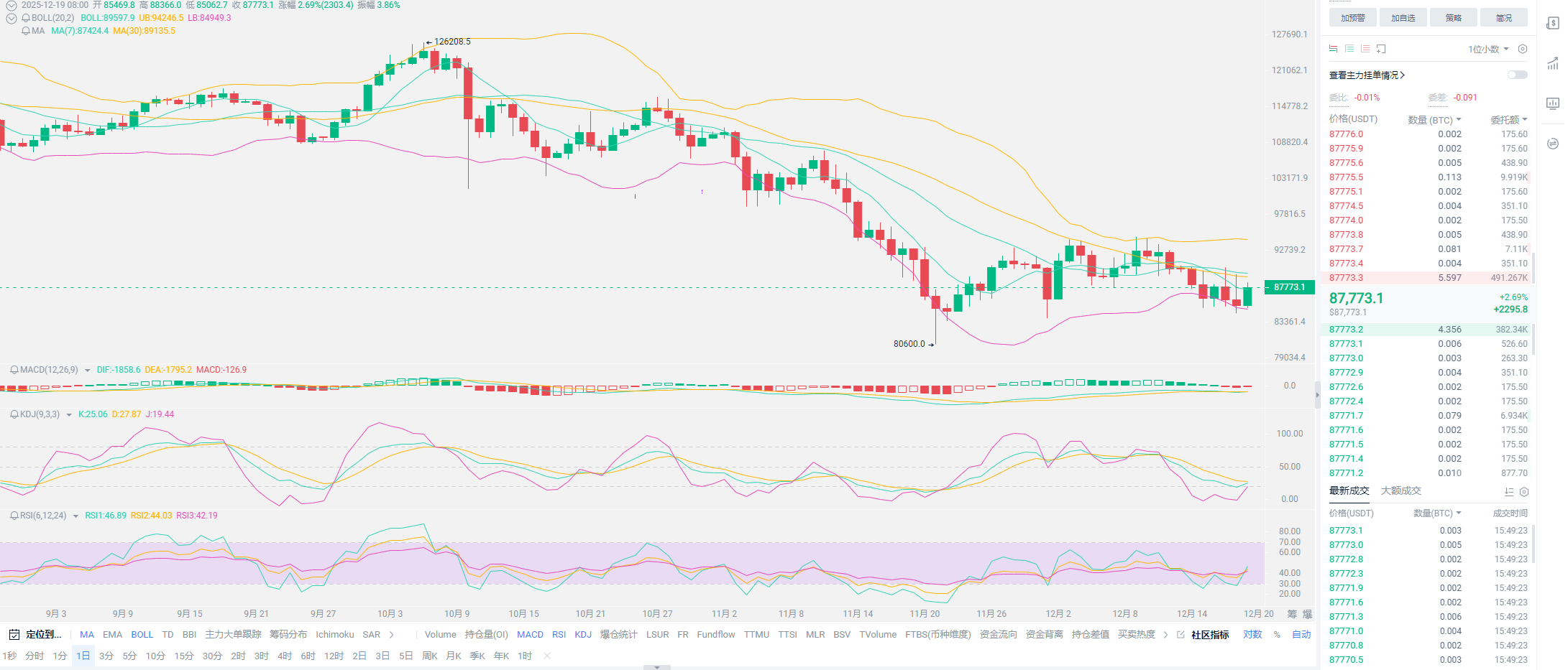 Lao Cui summarizes: Overall, the trend has not changed significantly, and the market trend after today's interest rate hike is actually growing against the trend. With the negative news exhausted, it is highly likely that bets will be placed on future positive news. What is the positive news? According to US speculation, there may still be two interest rate cuts in 2026, so is January worth looking forward to? Even if there is no interest rate cut, the pace of balance sheet expansion, which everyone sees as repurchase, will continue for half a year. Will this repurchase still drive growth in the crypto world? To be honest, Lao Cui does not view the market sentiment as pessimistic; rather, at the current level, Lao Cui is firmly bullish. This year's existence is more about digesting last year's bubble. As long as this year's digestion is completed, especially with the US's monetary easing starting and money printing, the crypto world will definitely have room for growth. Of course, all of this points to already listed cryptocurrencies, not other coins. The push for a weaker dollar cannot occur during a bear market. The current giants in the crypto world are merely trying to scatter everyone's bullish aspirations; the giants have not left the market, which is the focus. The current market trend is simply about shorting the positives and going long on the negatives, very much like a cleanup before a pump. If you are a contract user, Lao Cui also has the idea of going long at low levels. If you cannot grasp it, please consult Lao Cui; he still remains bullish in the future.