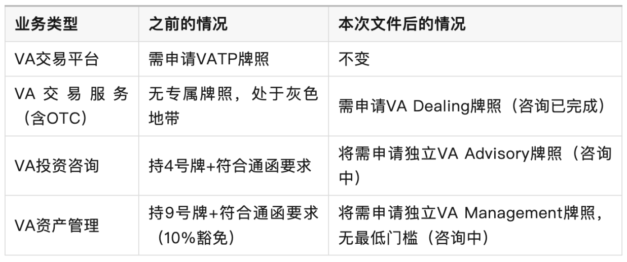 • Institutions holding Type 9 license (asset management) can manage portfolios containing VA (subject to a 10% exemption or other conditions).