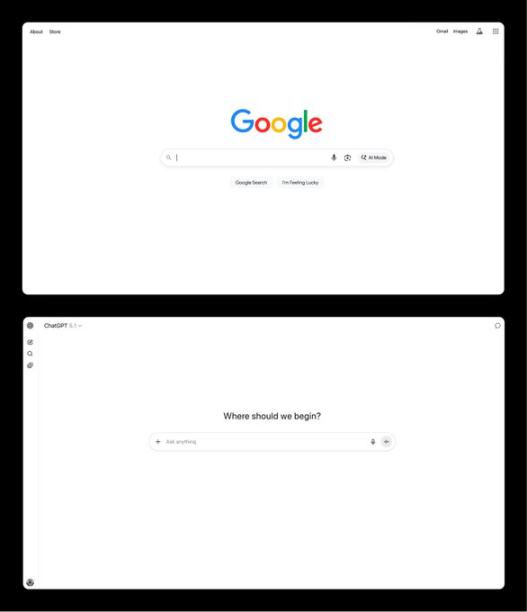 Today's most common artificial intelligence still resembles past Google searches. Quoting McLuhan: "We always drive into the future using our rearview mirror." Today, we see AI chatbots mimicking the Google search box. We are deeply entrenched in that uncomfortable transitional period that occurs with every technological revolution.
