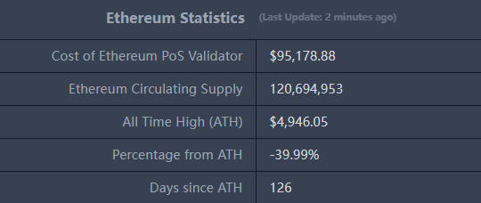 ETHUSD: Current price $2,972, historical highest price $4,946.05, down approximately 39.99% from the highest price.