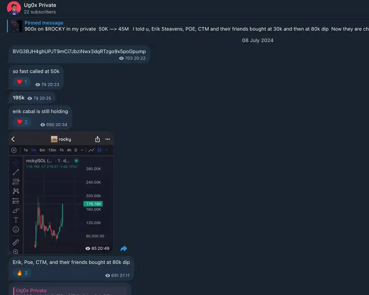 On July 8, 2024, a wave of operations around the $ROCKY token was a perfect example. At that time, Erik Steavens, POE, DOGEN, and CTM were quietly buying in when the token's market cap was between $10,000 and $80,000.