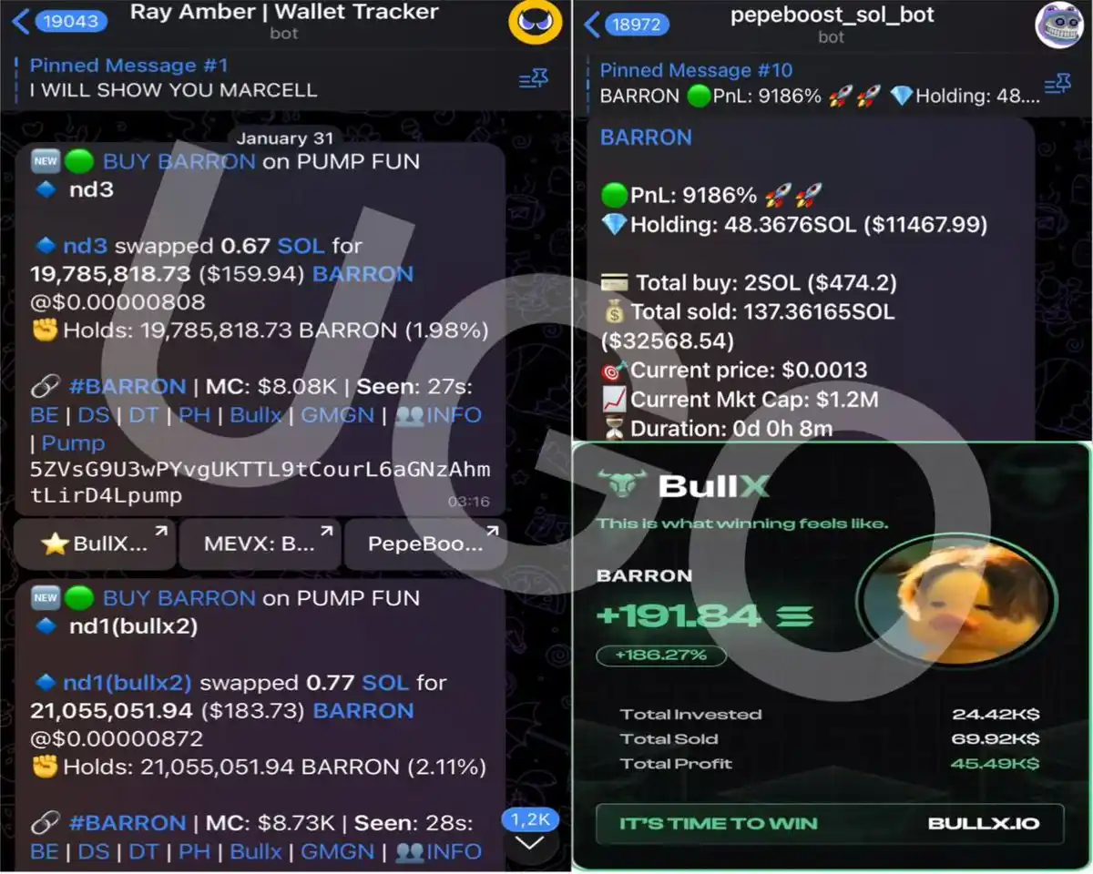 For example, I was closely tracking Marcell's wallet movements, so I could see his newly funded wallets every day. On January 31, he personally issued and held a large position in the $BARRON token.