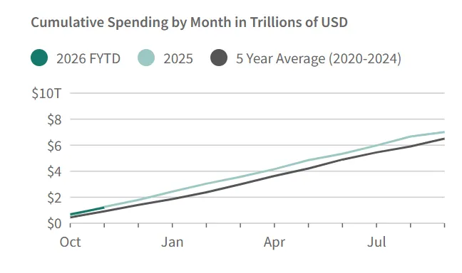 政府财政体系与企业最根本的区别在于,超过70%的联邦支出是强制性项目,这些支出由法律规定自动增长,受人口统计、经济周期和利率波动影响,完全不受行政裁员控制。2025年的数据清晰地展示了这一刚性:社保和医保等福利支出增加约1680亿美元,主要由人口老龄化和通胀调整驱动;国债利息成本飙升710亿美元,债务规模已扩张至36-38.3万亿美元,利息支出甚至超过国防预算,成为联邦最大单项开支。