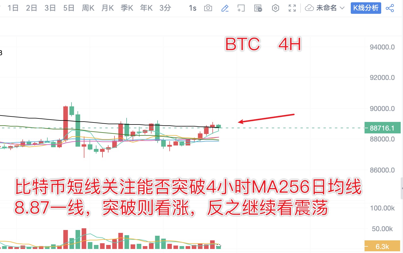 分析师陈树 :1.2比特币以太坊反弹关注8.87的站稳情况,继续看震荡