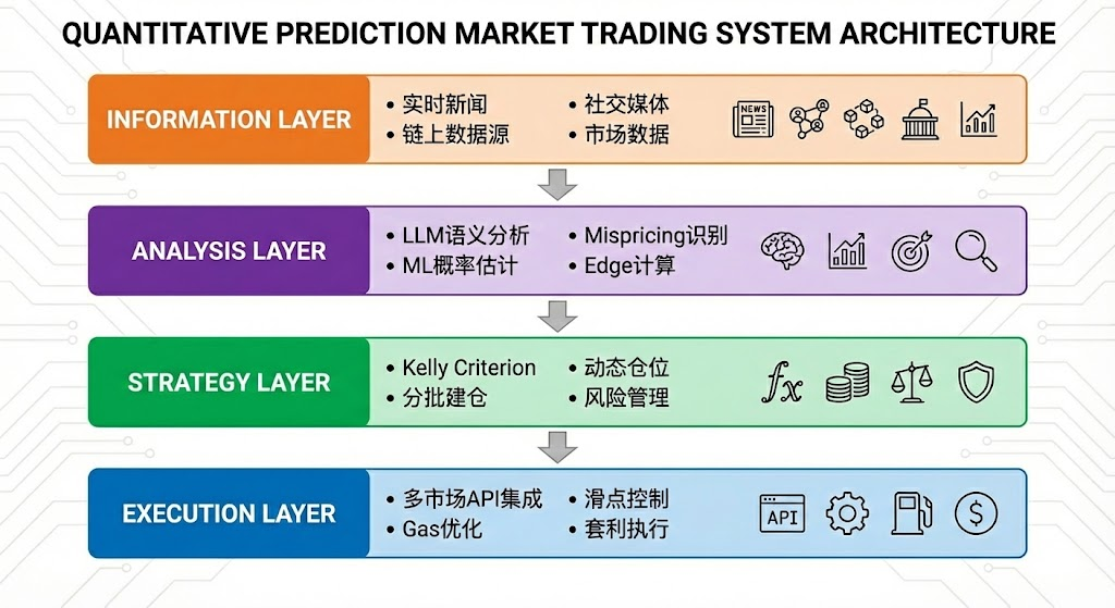 理想的预测市场智能体 可抽象为四层架构: