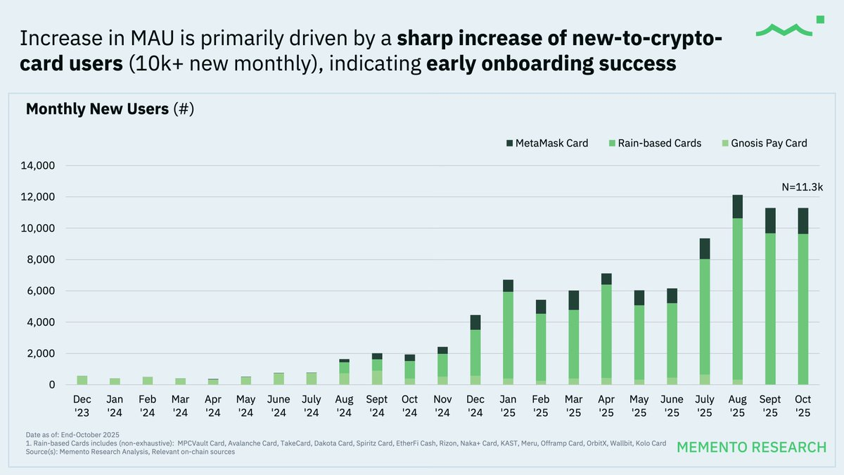 关键洞察:自 2025 年下半年以来,一波新的加密卡项目陆续推出,并选择 Rain 作为核心基础设施合作伙伴。这一趋势推动了更高的存款流入,同时加速了新用户的引入。