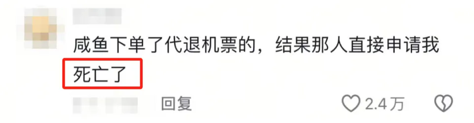 有人想退机票,在闲鱼上寻求帮助,直接喜提一张“死亡证”。