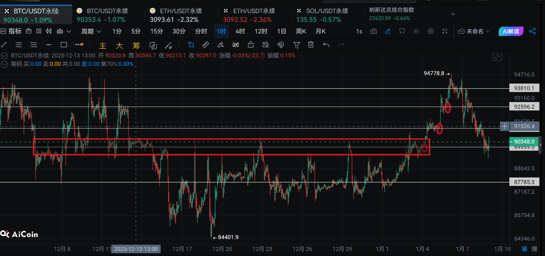 If the market reaches 91500-91800 and there is significant selling pressure, we will consider the possibility of the resistance moving down. As for the entry point when we previously went long, if we return here, we can consider reducing our positions. Let's keep the stop-loss range a bit wider for now. After consecutive mistakes, adding to positions is a last resort. For those who haven't exited yet, consider pulling back, and use this opportunity to reduce the bottom of your positions a bit.