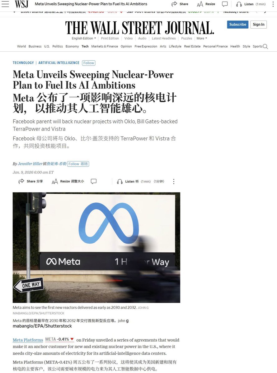 Meta has just announced a partnership with #Oklo, Bill Gates-supported TerraPower, and power giant Vistra to comprehensively lay out its nuclear power strategy. With the explosive growth in demand for AI training computing power, traditional power grids are struggling to keep up, making nuclear power a key option for tech giants seeking "energy independence."