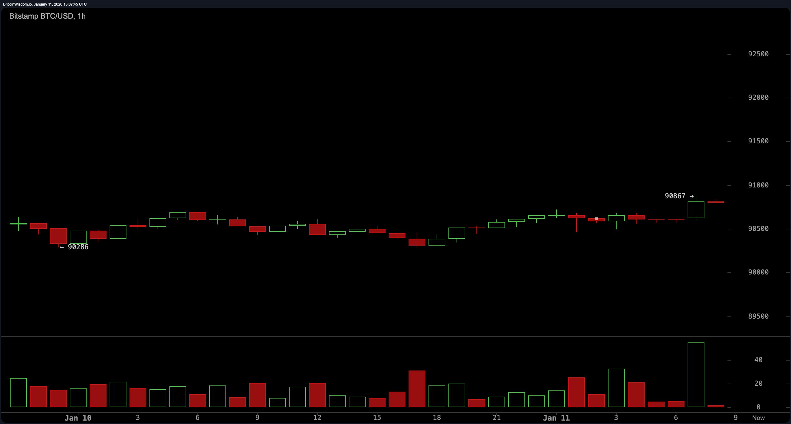 Bitcoin is trading at $90,828 as of January 11, 2026. - What is bitcoin’s intraday price range today?