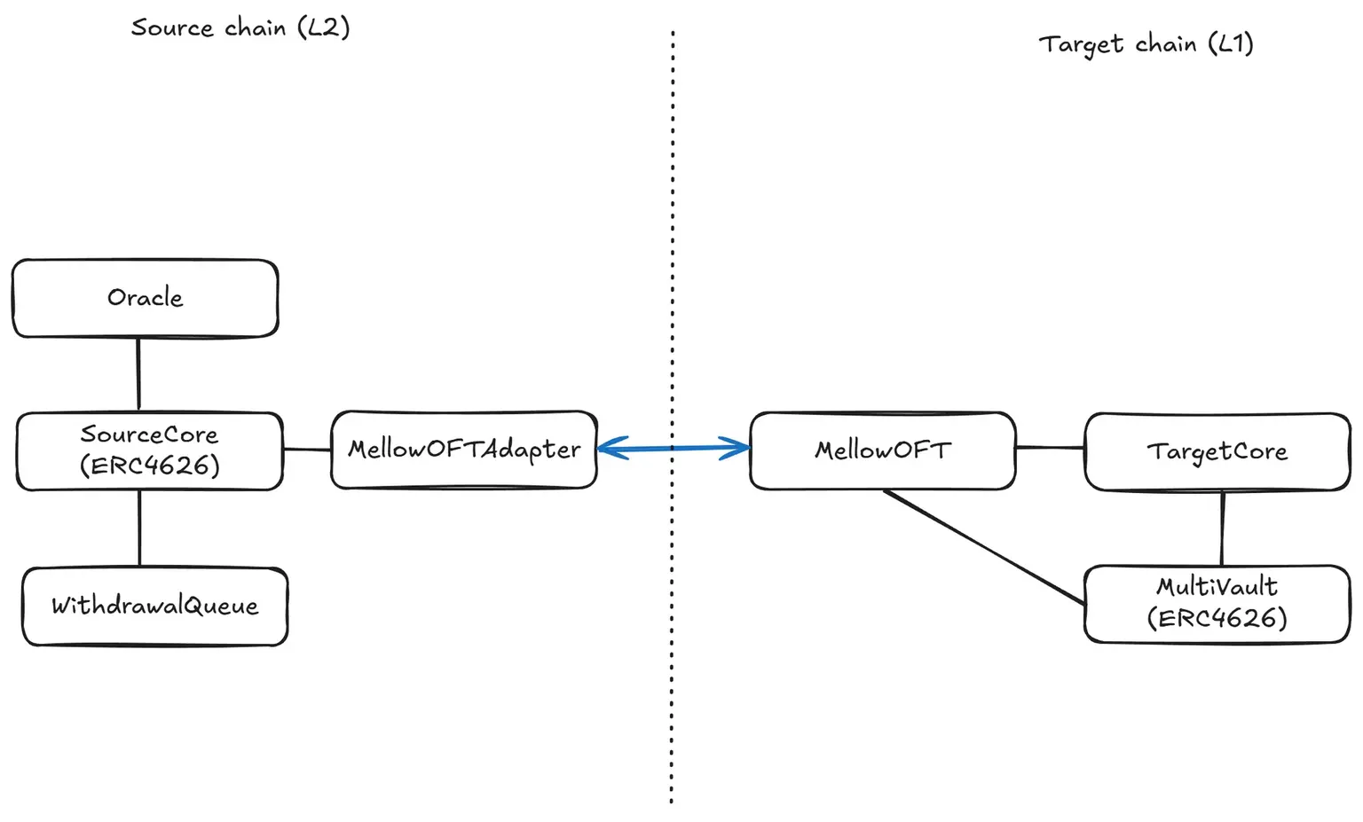 系统依托 LayerZero 的 OFT(Omnichain Fungible Token)标准 实现资产的跨链映射,并由 Mellow 的 MultiVault 在 L1 调度并管理再质押收益。