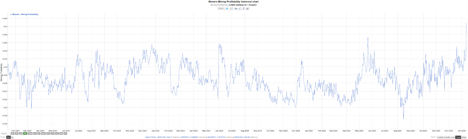 An interesting episode must be mentioned: In September, the Qubic project claimed to control over 51% of the total XMR network hash rate and conducted a "demonstrative attack," leading to a chain reorganization of up to 18 blocks on the XMR network. This event sounded the alarm for the community, prompting many miners to migrate their hash power to the established mining pool SupportXMR. This incident was a major reason for the drastic fluctuations in mining difficulty at the end of 2025, but it also indirectly confirmed the activity and resilience of the hash power market.