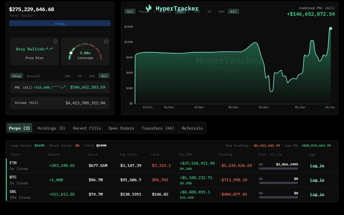 通过公开数据追踪,该地址自去年11月以来已累计实现利润超过2800万美元。其交易风格以中等杠杆(通常3-5倍)和较短持有周期为特征,平均持仓时间为7-15天。