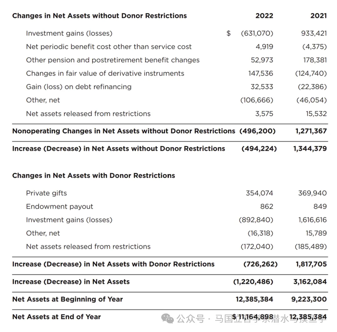 很可惜,财报里并没有直接告诉我们究竟炒币亏了多少钱。不过,在2022财年的财报中,芝加哥大学公布了自己加密货币的投资(公允市场价值):截至2021年6月底约为六千四百万美元,而截至2022年6月底则约为四千五百万美元(差值约为一千九百万美元)。而在之后的财报中,或许是因为赚麻了,又或是因为亏麻了,芝加哥大学更改了统计方式,不再公布自己加密货币的投资了。不过,根据2025年的答疑的说法,芝加哥大学仍然在相对谨慎地投资加密货币。