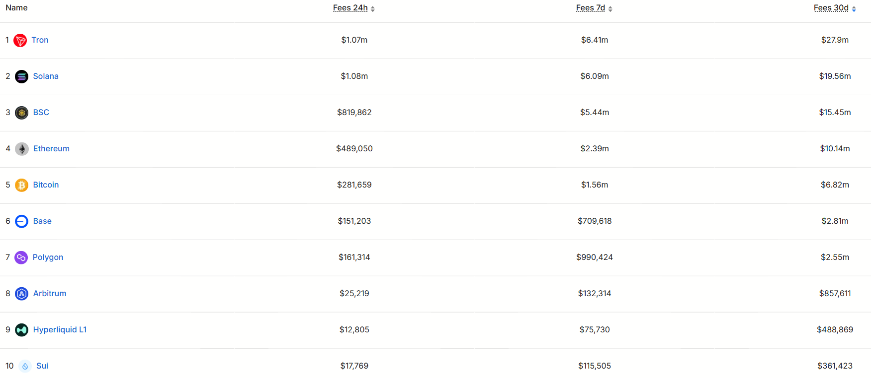 In addition to strategic layouts, Polygon's on-chain data performance is also impressive. According to defillama.com data on public chain revenue over the past 30 days, Polygon ranks seventh, still maintaining a certain resilience in the fiercely competitive public chain arena.