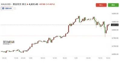 由于地缘风险缓和,白银大跌,黄金短期出现快速回落,但金价随后又快速拉起。截至北京时间1月22日早上7点,国际黄金现货价格报4831.45美元/盎司,今年以来涨幅超过11%,一年涨幅高达约70%。