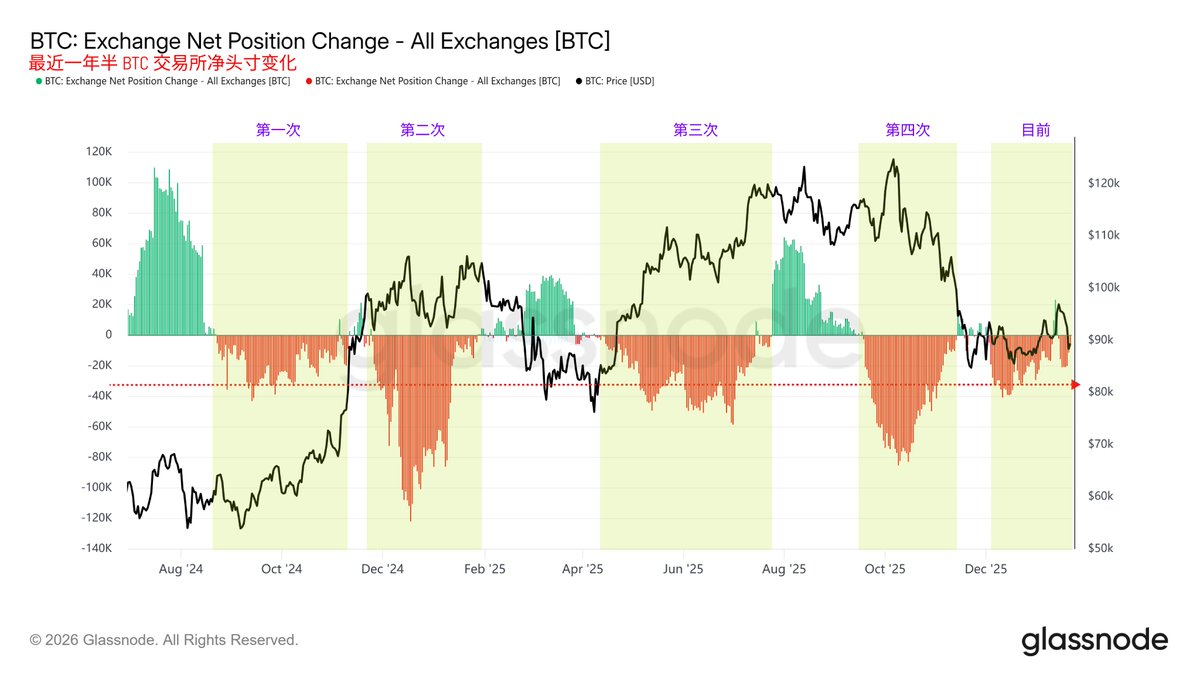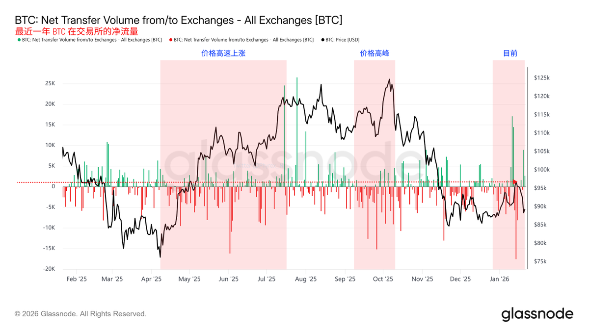 最近一年交易所 Bitcoin 的净流量