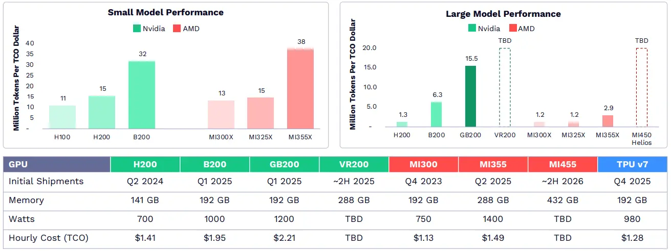 英伟达早期在 AI 芯片设计、软件和网络方面的投资,使其图形处理器(GPU)的市场份额达到 85%,毛利率达到 75%。如今,像 AMD 和谷歌这样的竞争对手在某些领域,如小型语言模型推理方面已经迎头赶上。英伟达的 Grace Blackwell 机架式系统在大型模型推理方面处于领先地位,为最先进的基础模型提供支持。