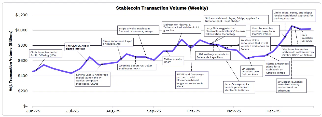 12 月份稳定币交易量达到 3.5 万亿美元,远超大多数传统支付系统。