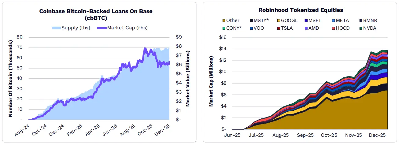 传统企业正在构建其自有的链上基础设施。 Circle(Arc)、Coinbase(Base,cbBTC)、Kraken(Ink)、OKX(X Layer)、Robinhood(Robinhood Chain)和 Stripe(Tempo)正在推出公司自有品牌的 L1/L2 网络,以支持其自身产品,例如比特币抵押贷款、代币化股票和 ETF,以及基于稳定币的支付渠道。