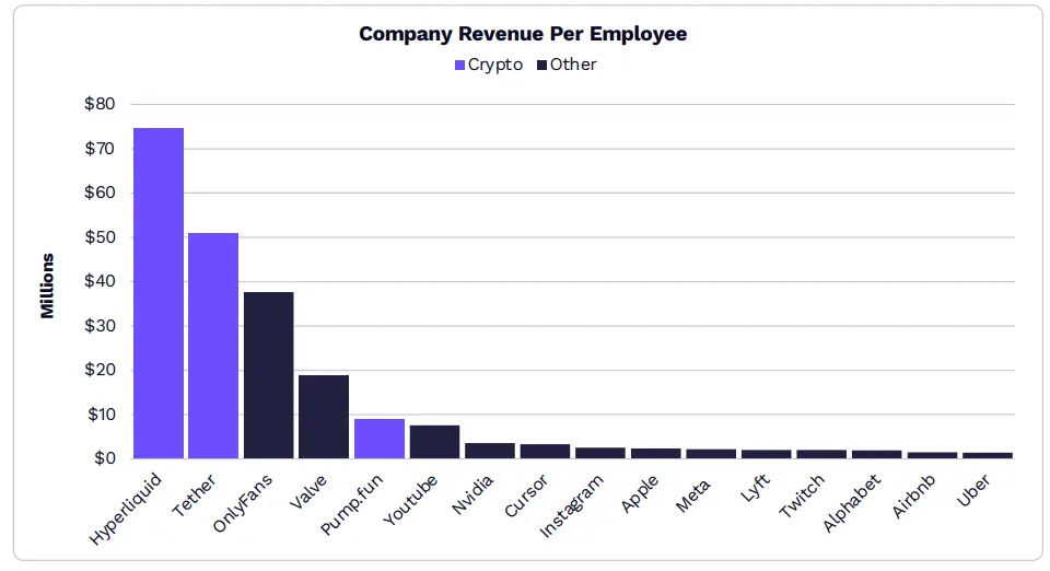 全球最具营收效率的公司包括 HyperliquidTether Pump.fun