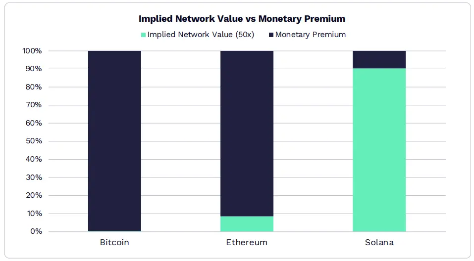 而 Solana 产生了 14 亿美元的收入,证明其估值 90% 来自网络效用。