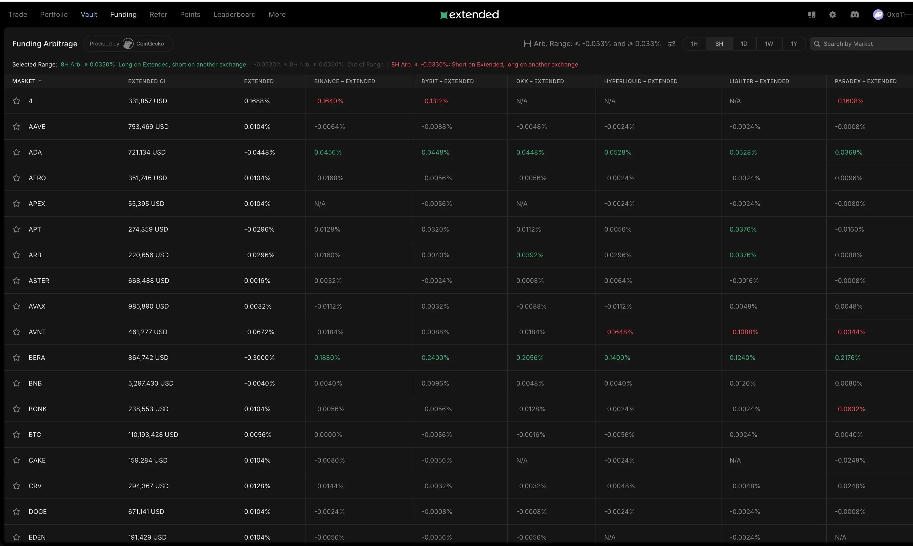 这里我们就要监控不同平台上的资金费率,识别两个平台的永续合约市场资金费率了。所以我们可以用到一些工具,比如 SmartArbitrage 这个工具能实时显示各个平台的套利机会,Variational 的 API、Extended 也有可视化的费率对比界面。除此之外还有 Telegram 机器人 @lighter_arbitrage_bot,也会自动推送套利机会提醒。一旦发现费率差开始缩小,或者某一边的费率转为负的了,就可以考虑平仓了。