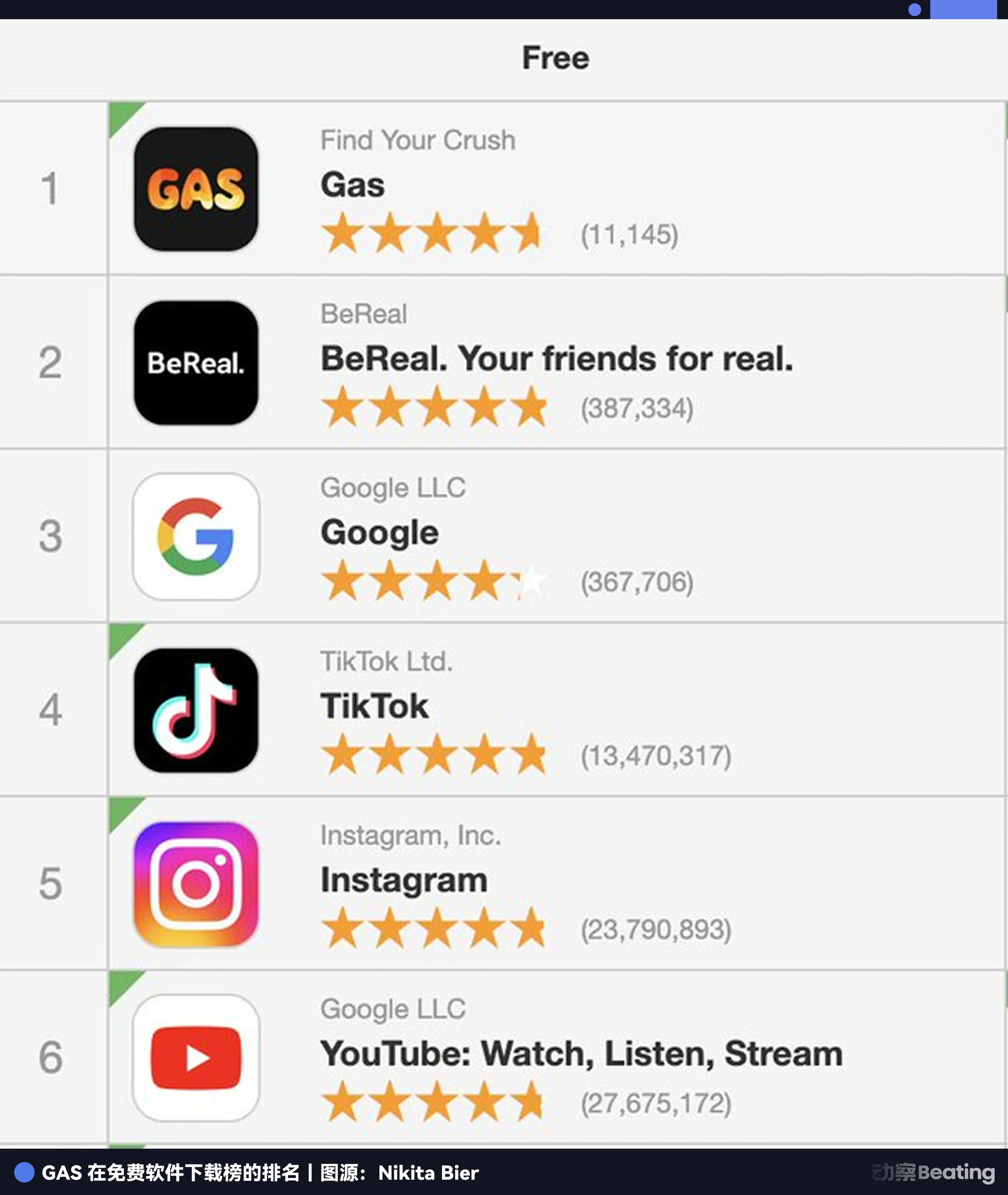 Gas 在三个月内吸引了 1000 万用户,创造了 1100 万美元的收入,一度超越 TikTok 和 Meta,成为美国最受欢迎的应用。2023 年 1 月,Discord 以 5000 万美元的价格收购了 Gas。