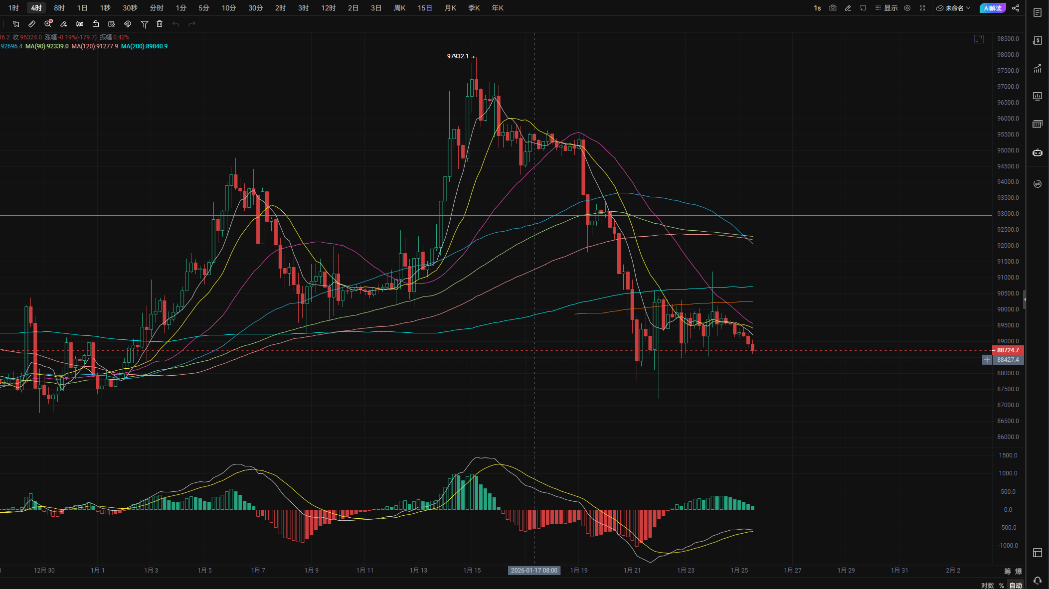 下方回踩85080-83830附近可进行接多,反弹目标可看至88000-92000附近