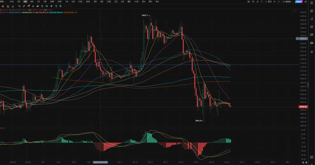下方回踩2735.7-2707附近可进行接多,反弹目标可看至2840附近