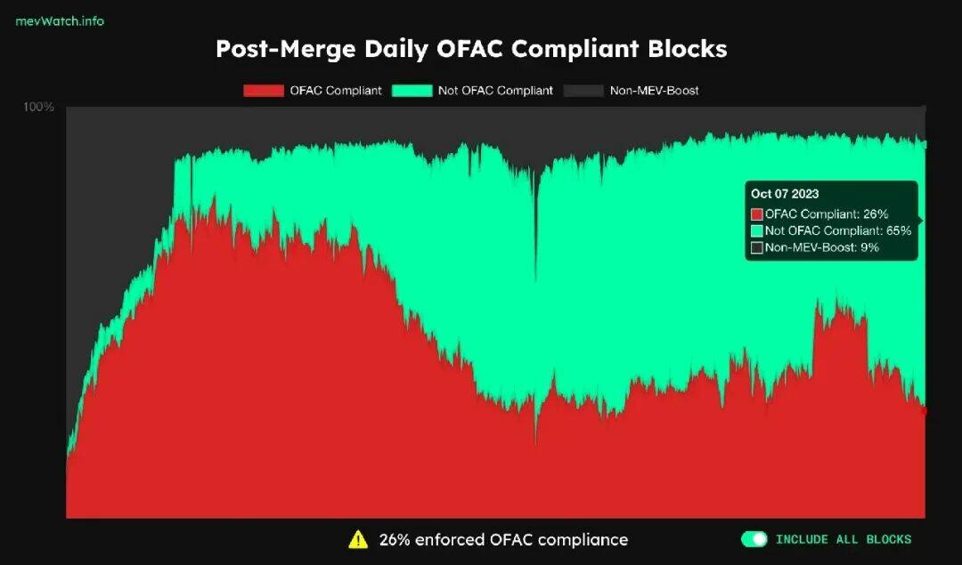 因为随着加密货币行业的成熟,监管是不可避免的,所有在美国注册成立的实体及其运营以太坊 POS 验证器的机构都应符合 OFAC 要求,但是区块链的系统机制注定了他不会只在美国存在,只要有其他符合当地政策的中继就可以确保在某个契机可以上链传播。