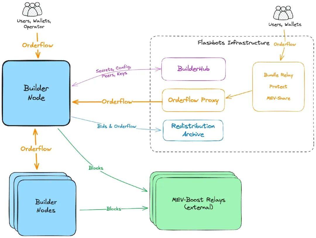 这时候,MEV 进入了“机制化挖掘”阶段。Flashbots 成为了核心基础设施,绝大多数有组织的 Searcher 和 Builder 都通过它参与区块构建。