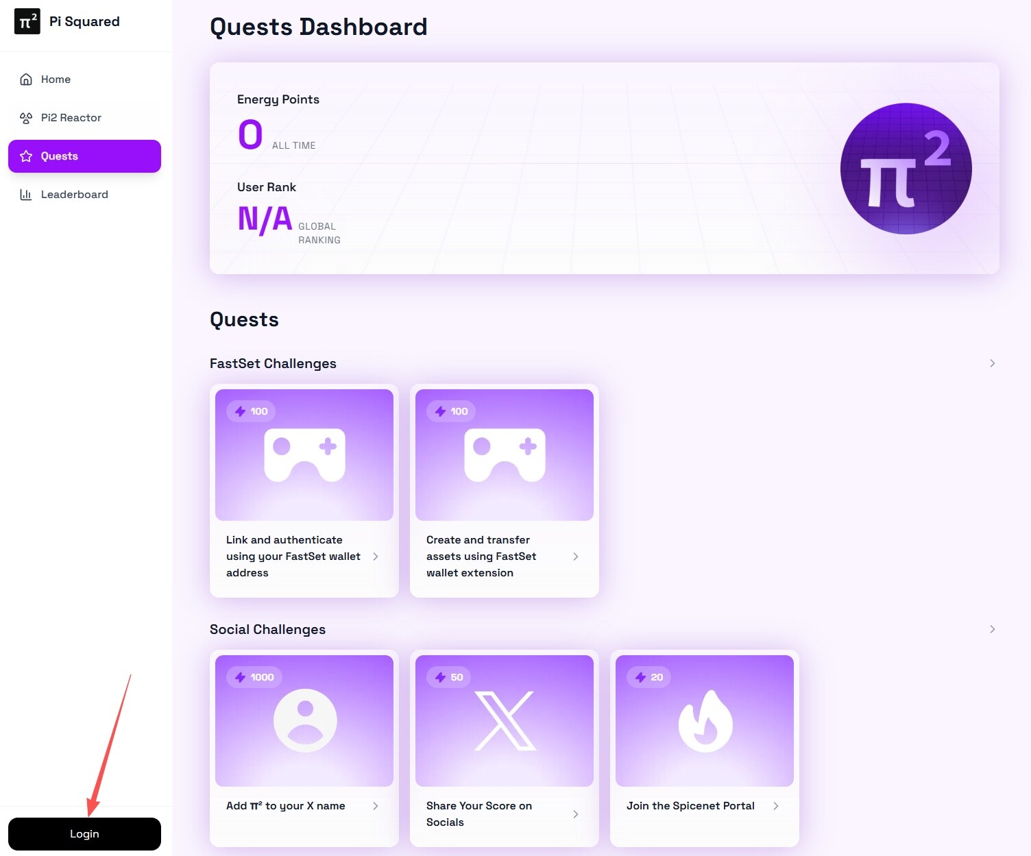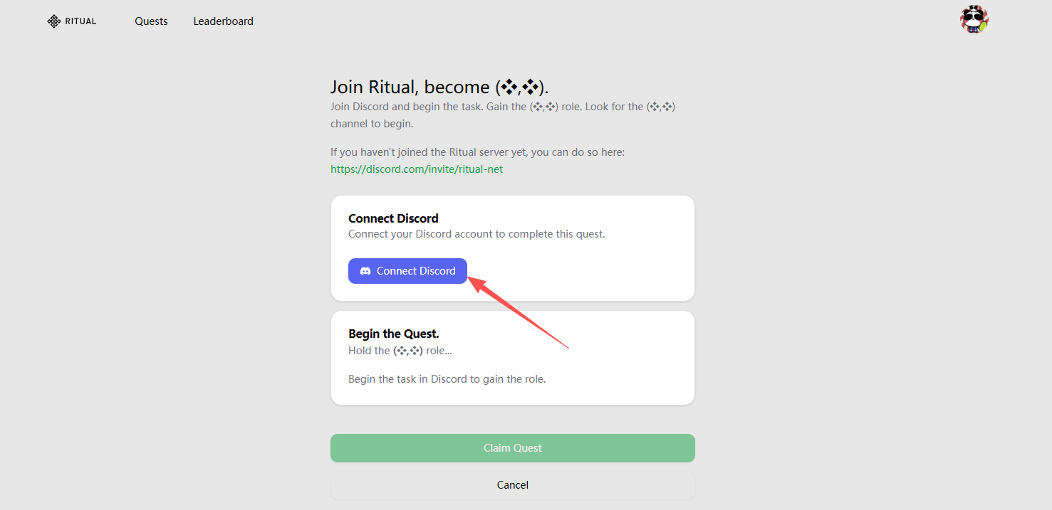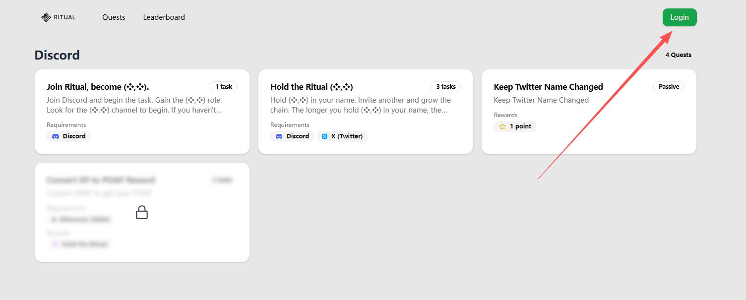 STEP 1. Go to the interaction website (link: https://ritual-synful.domino.page/quests), click on the Login in the upper right corner, and log in using your X account.