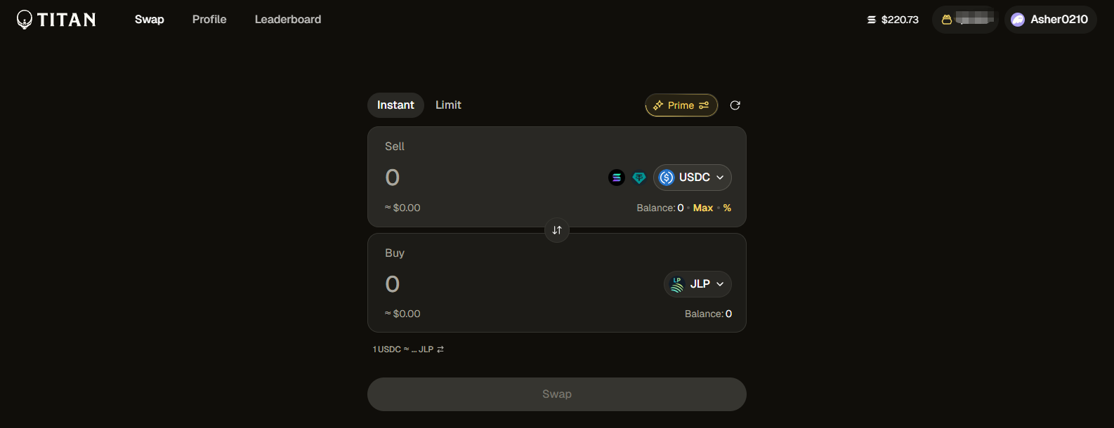 STEP 1. Go to the interaction website (link: https://app.titan.exchange/), connect your Solana ecosystem wallet, and set a nickname.