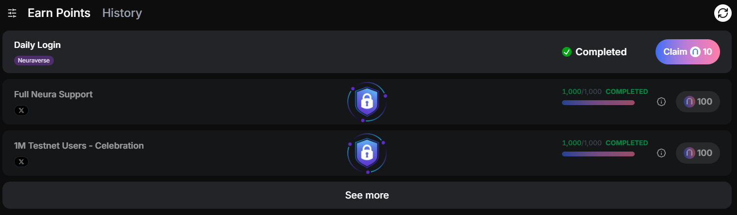 Go to the interaction website (link: https://neuraverse.neuraprotocol.io/?section=leaderboard), connect your wallet to log in, and complete daily tasks.