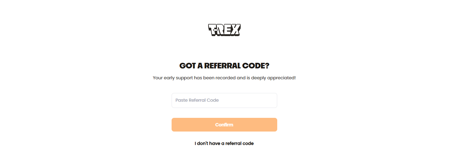 STEP 1. Go to the interaction website (link: https://www.trex.xyz/auth/portal-login), create an account, and enter the invitation code 7DMAZO4Z to join.