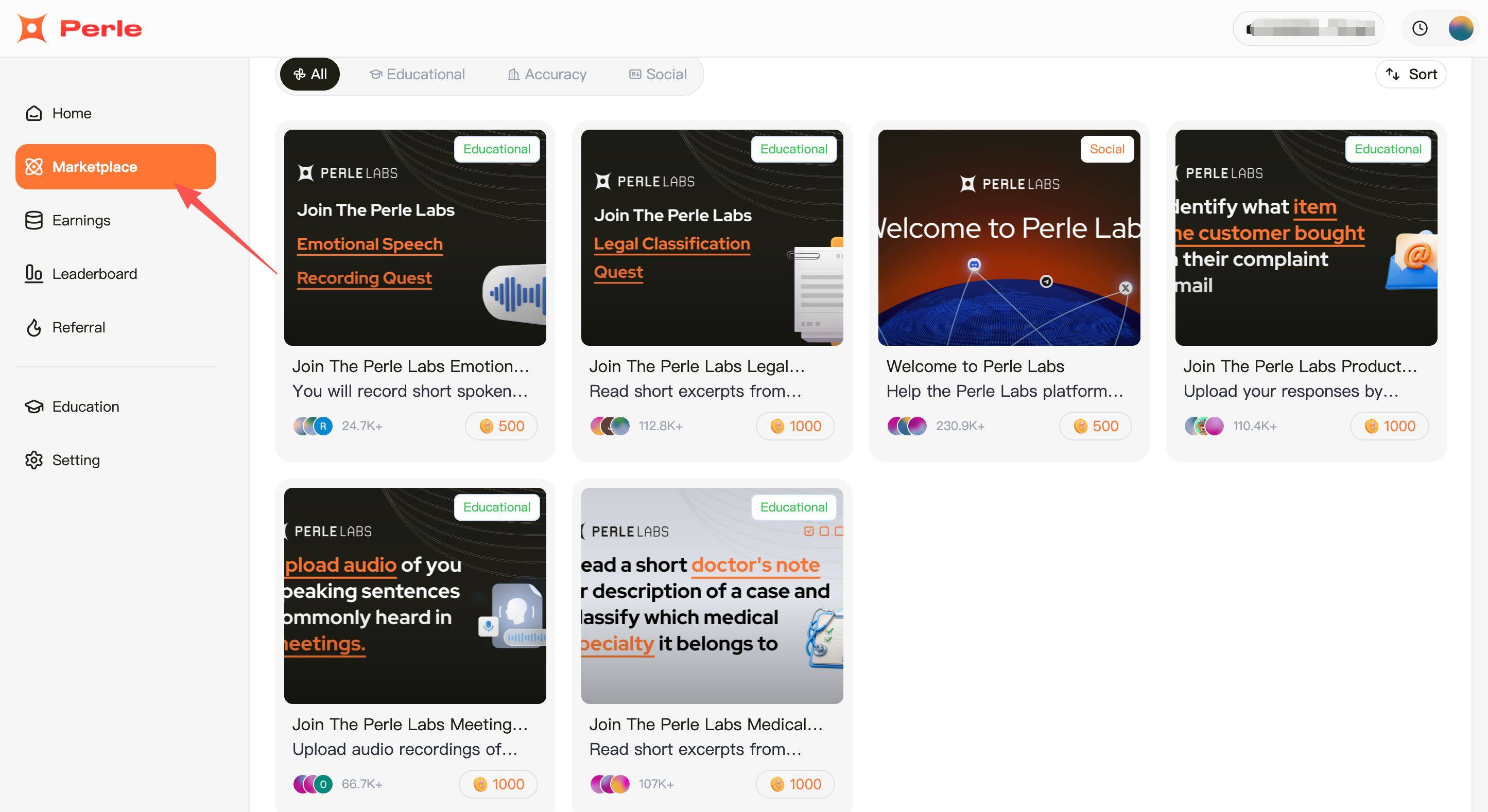 STEP 2. Click "Marketplace," where you will find 6 tasks to participate in.