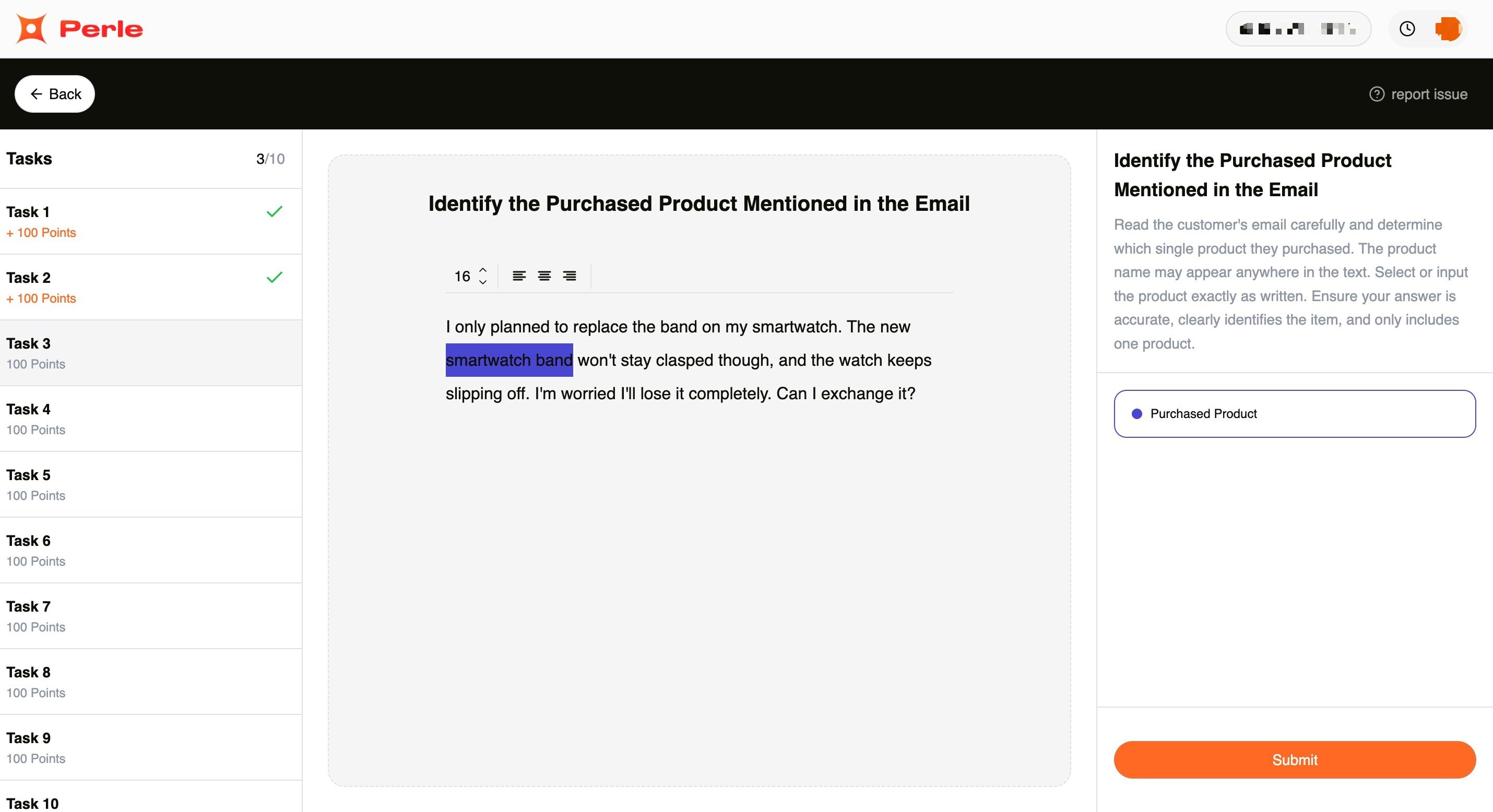 Task 3. Join The Perle Labs Product Tagging Quest, find the mentioned products in complaint email information. There are 10 questions, each worth 100 points, for a total of 1000 points.