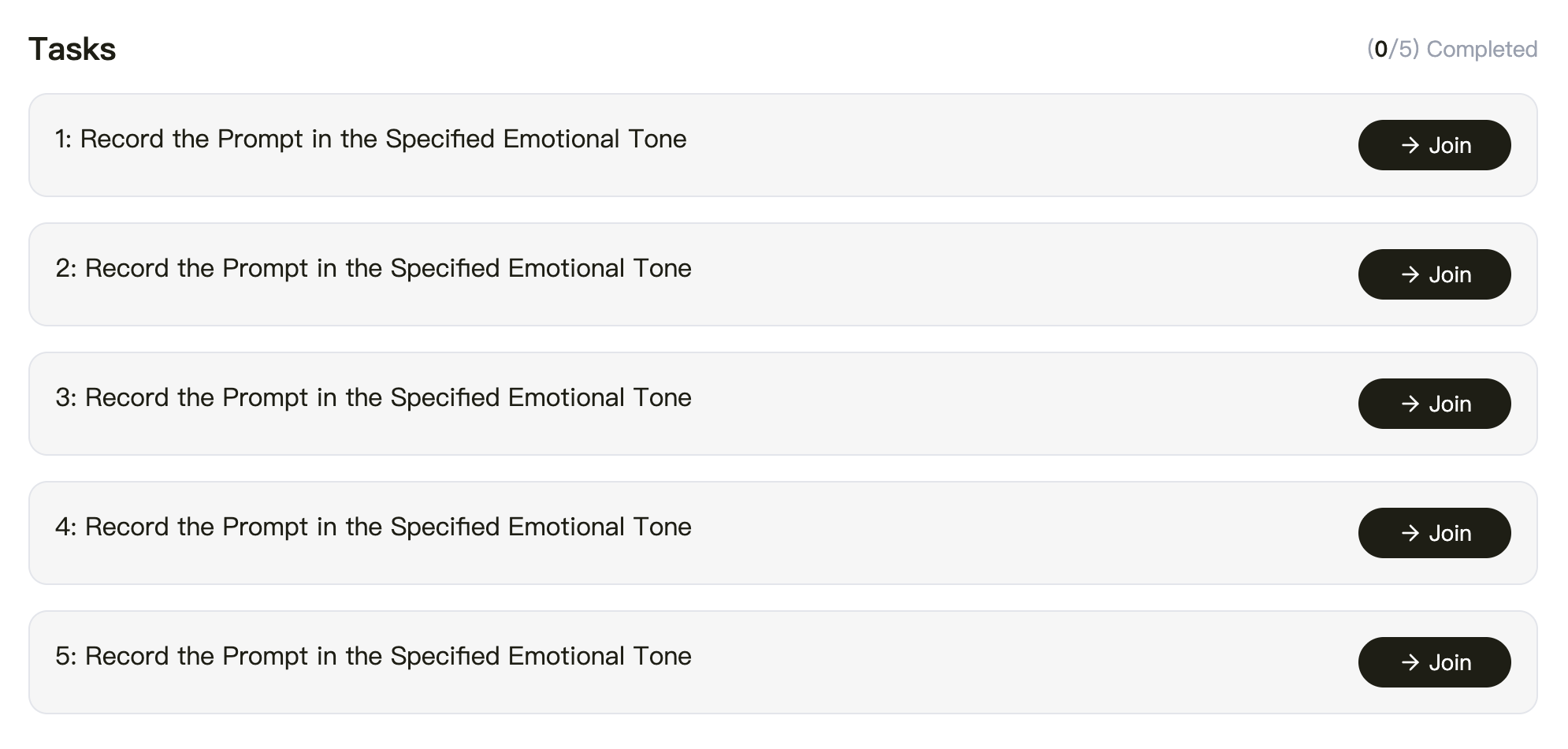 Task 6. Join The Perle Labs Emotional Speech Recording Quest, record audio in a specified tone (in English). There are 5 questions, each worth 100 points, for a total of 500 points.