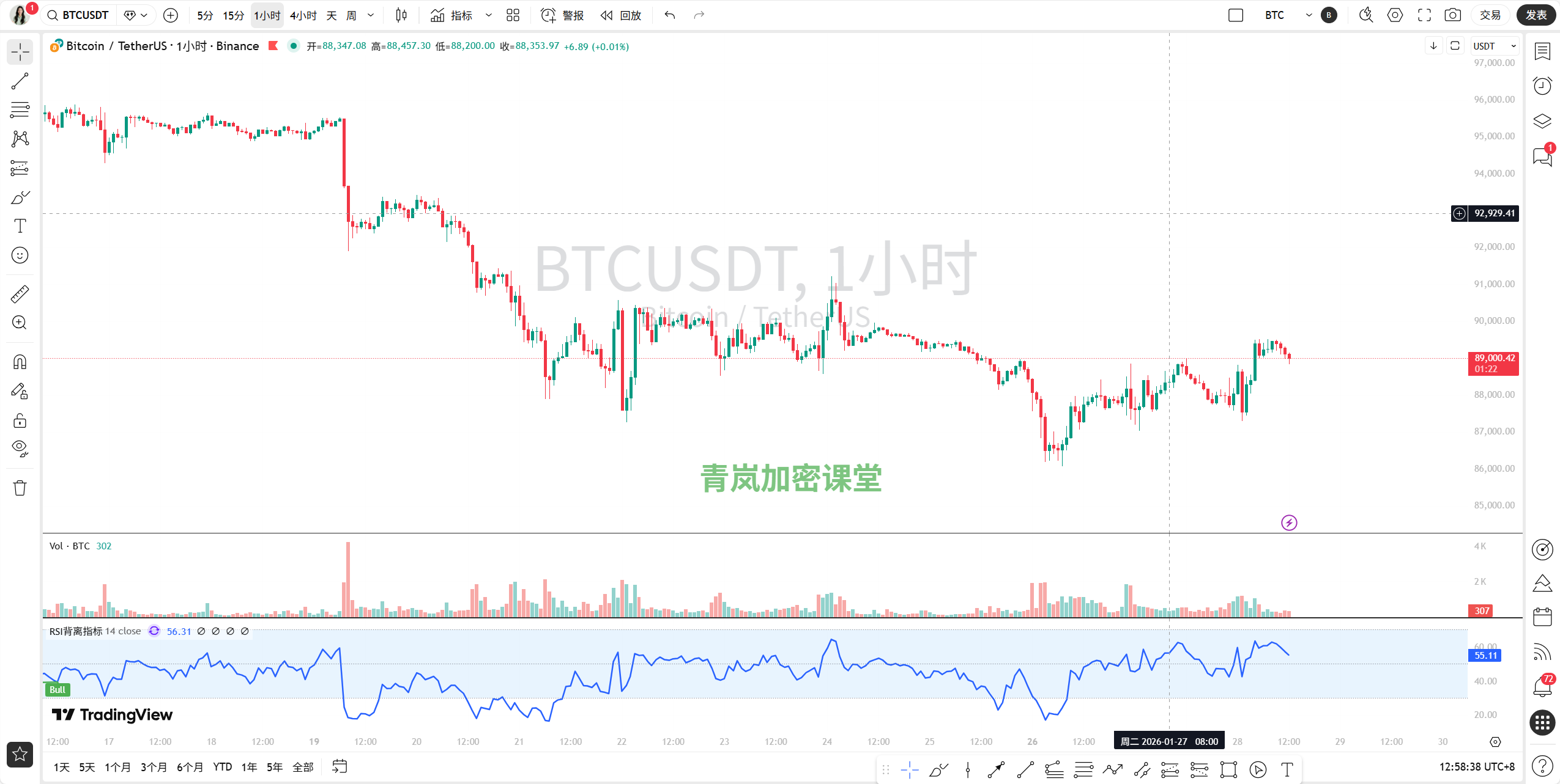 青岚加密课堂:1月28日 BTC 行情解读