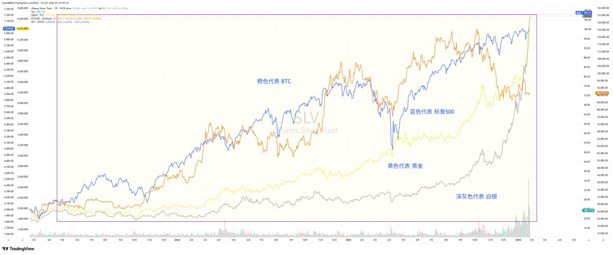 很多小伙伴都在吐槽 $BTC 相比黄金来说涨的太低了,和白银相比更是差距很大,甚至是 标普500 都把 Bitcoin 甩在了后边,但实际情况真的是这样吗?