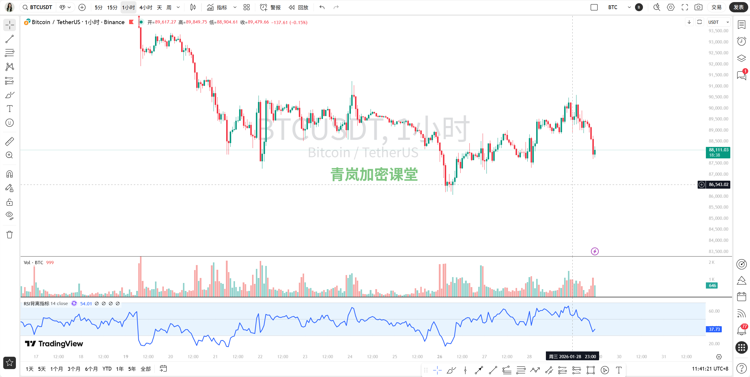 • 4-hour chart (medium term): Most critical! It has just broken below the "88,000-90,500 dollar fluctuation platform" that had been maintained for over a week. You can think of this platform as a "castle in the air," and now that the floor has been breached, the price will naturally seek support at the next platform below.