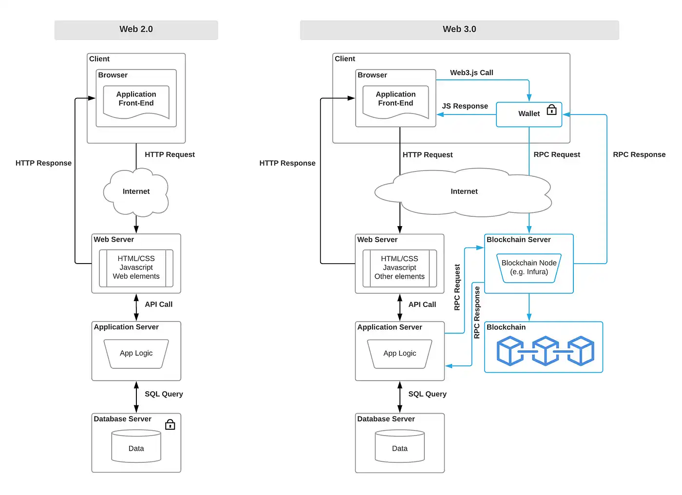 Web2 和 Web3 融合的技术架构, 展示 Cloudflare、Coinbase、以太坊如何分工协同
