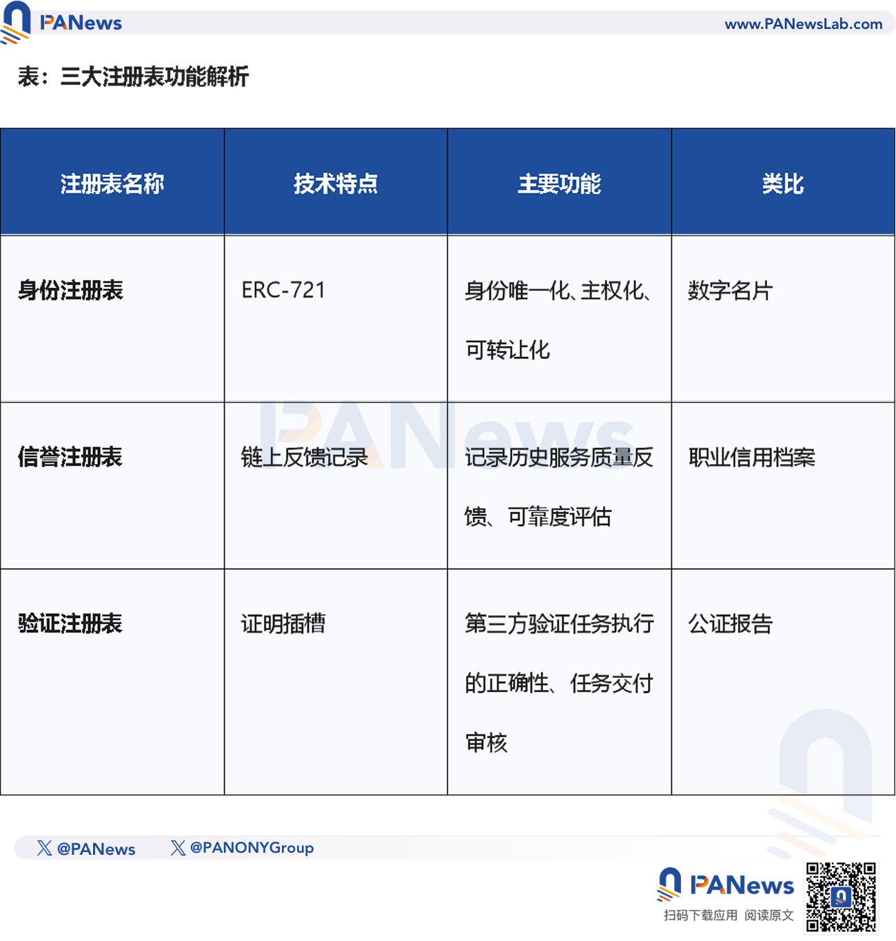ERC-8004并没有尝试构建一个庞大复杂的系统,而是设计了一套轻量级、可扩展的链上注册表体系,旨在为AI代理提供最基础的信任原语。