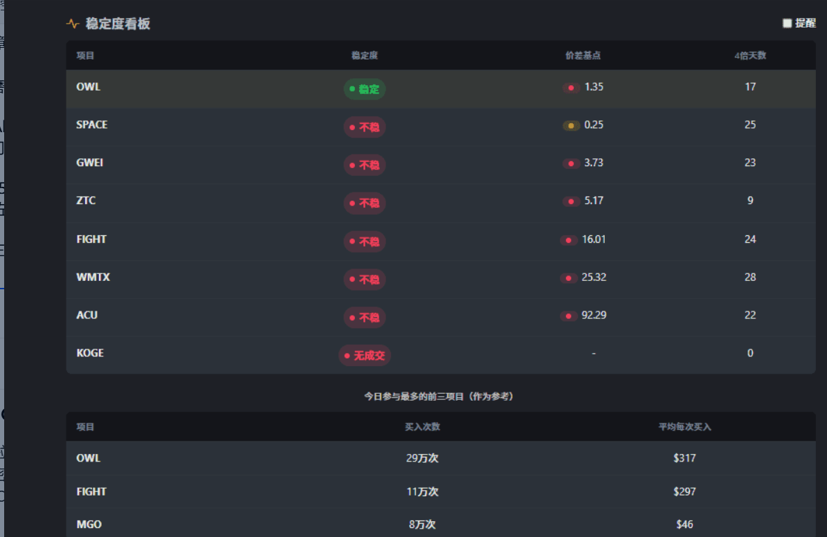 按万 2 手续费算,每天刷 15 分、完成 32768 交易量,磨损大概 2U 左右。选标的要盯紧三个点:交易量大(单子能秒成交)、价格稳定(磨损小)、带 4 倍标志—— 带 4 倍标志的标的,刷一次抵四次,用少量交易量拿高分,不过波动可能大,一定要等稳定了再动手!