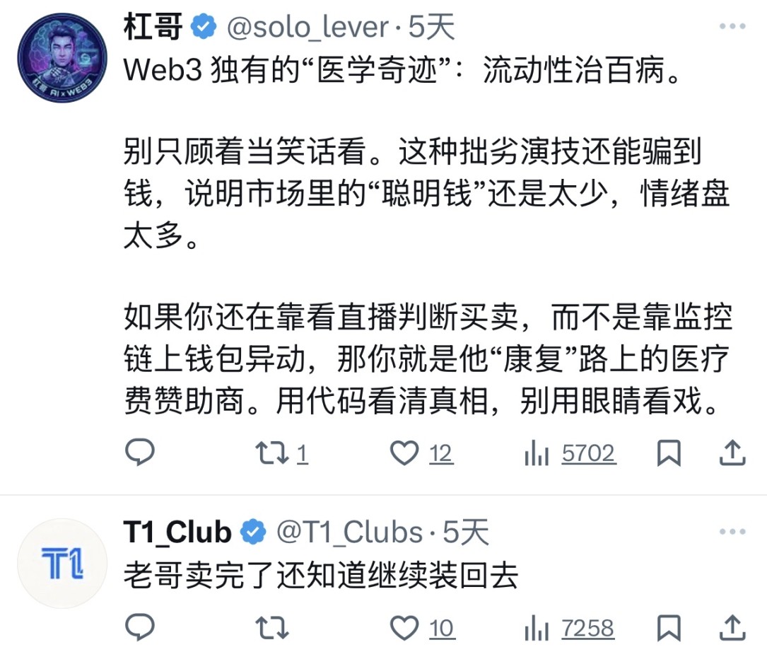 这场直播行为艺术,以最赤裸的方式揭开了某些 Meme 币世界的荒诞法则:叙事(哪怕是最拙劣的表演)驱动价格,而流动性则来源于人性中的轻信与贪婪。开发者用几分钟的「即兴表演」,生动诠释了何为「开盘为了出货」。建议将此片段列入「Web3 防骗警示录」经典案例。