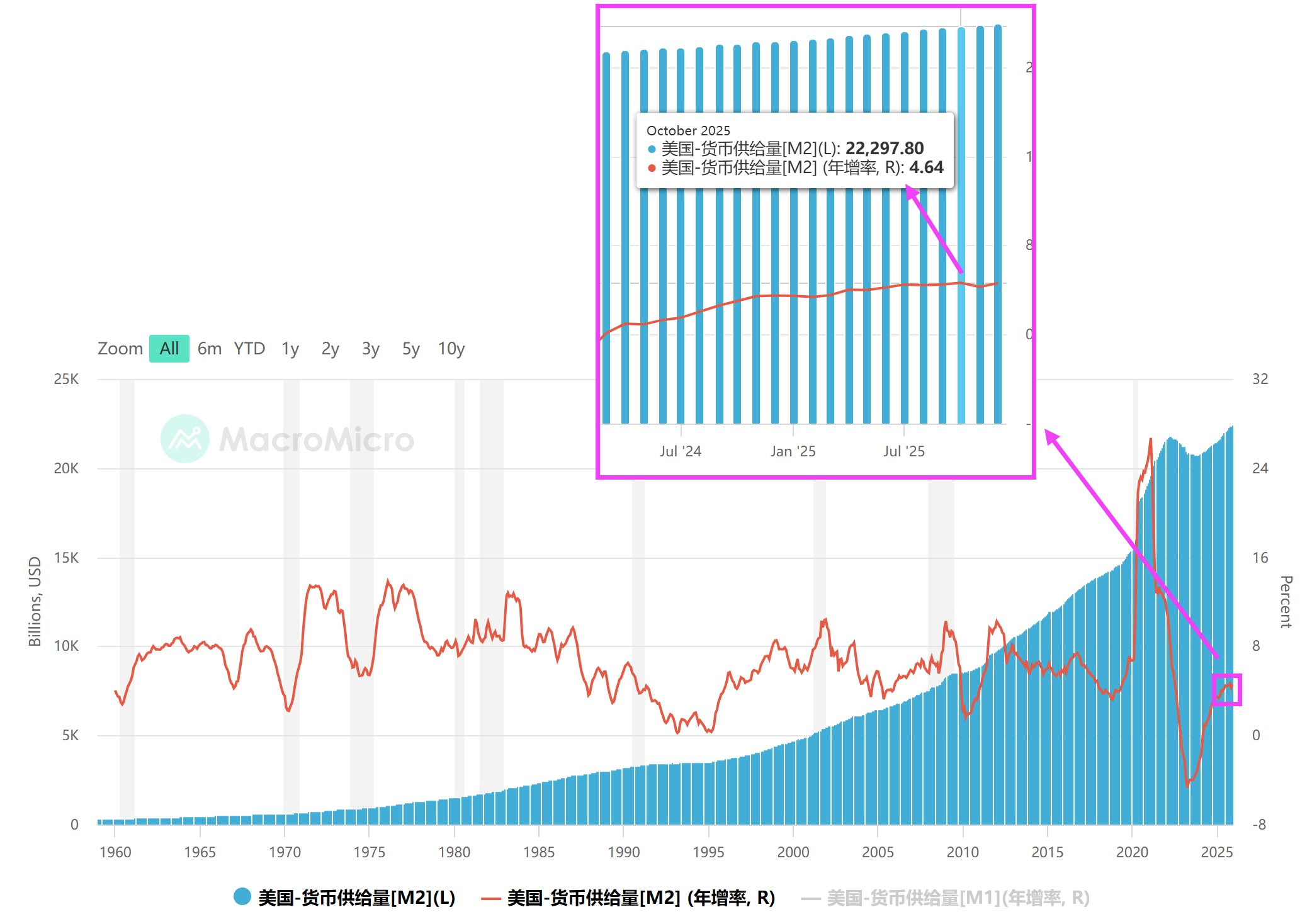 In 2025, the annual growth rate of M2 is generally at a historically low level, and by October 2025, the growth rate of the annual growth rate of M2 is close to zero, with a decline starting in November.