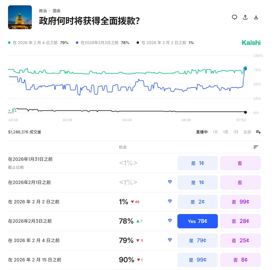 因此,周一上午很可能仍处于停摆中,但下午或当天晚些时候可能结束,具体取决于众议院投票进度。当前 Kalshi 上普遍认为停摆的时间可能就会在 1-2 天左右。因此,这次的停摆对市场的影响并不大,而且即便是停摆,也并不是所有部门都停摆。