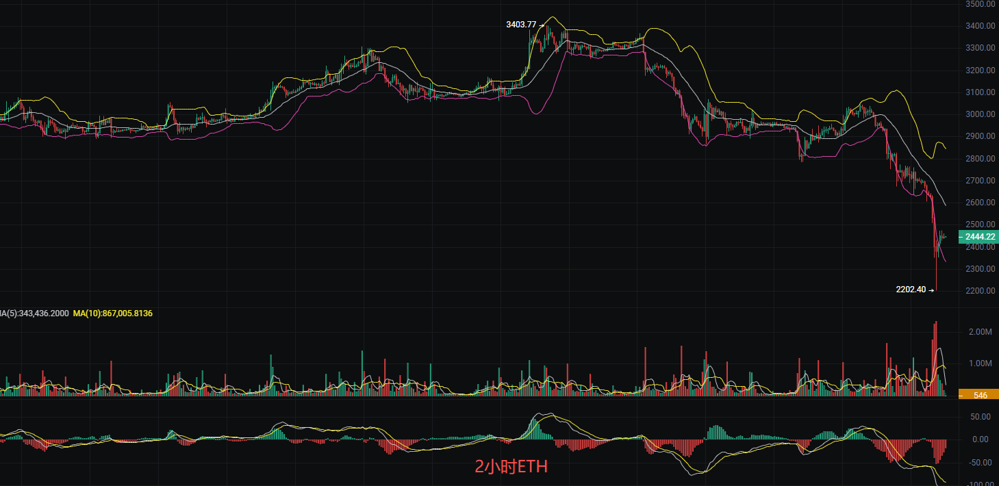 Before publication, the current price of Ethereum is 2,440. Li Ying observes that the daily line has been continuously declining, dropping from 3,010 to 2,442, showing a clear downward trend. The 2-hour K-line experienced a sharp drop, reaching a low of 2,250 before rebounding, but overall it remains in a weak oscillation. The MACD on the 2-hour chart shows a dominant bearish trend; however, there are signs of narrowing, and it is necessary to watch for a potential golden cross. The EMA is in a strong downward trend, with the area around EMA7 likely to become a short-term resistance level. In the short term, there is a need for a rebound, so traders should pay attention to the levels above 2,550; if the situation is unfavorable, they should take profits and reverse their positions.